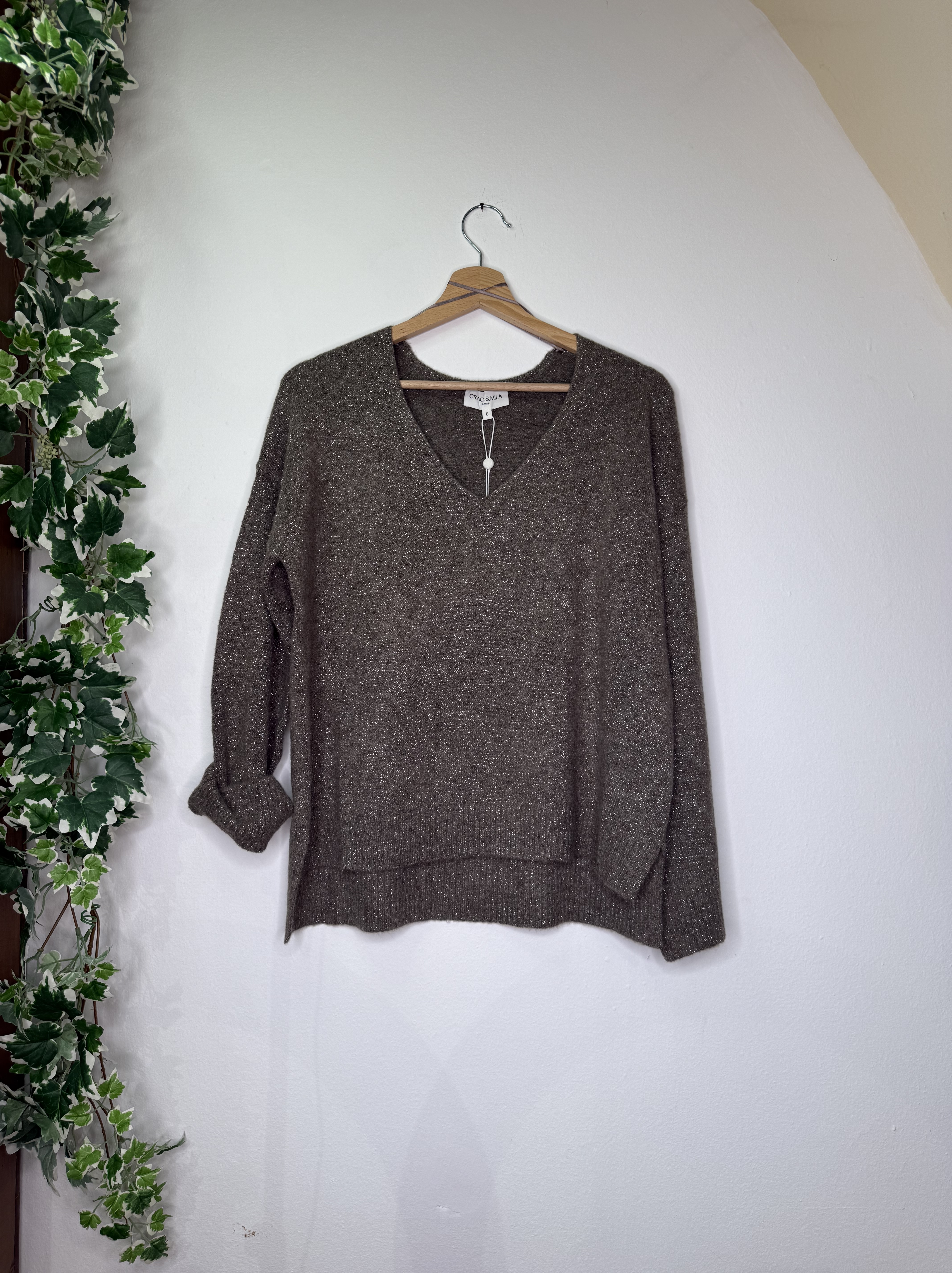maglione lamè con scollo a v