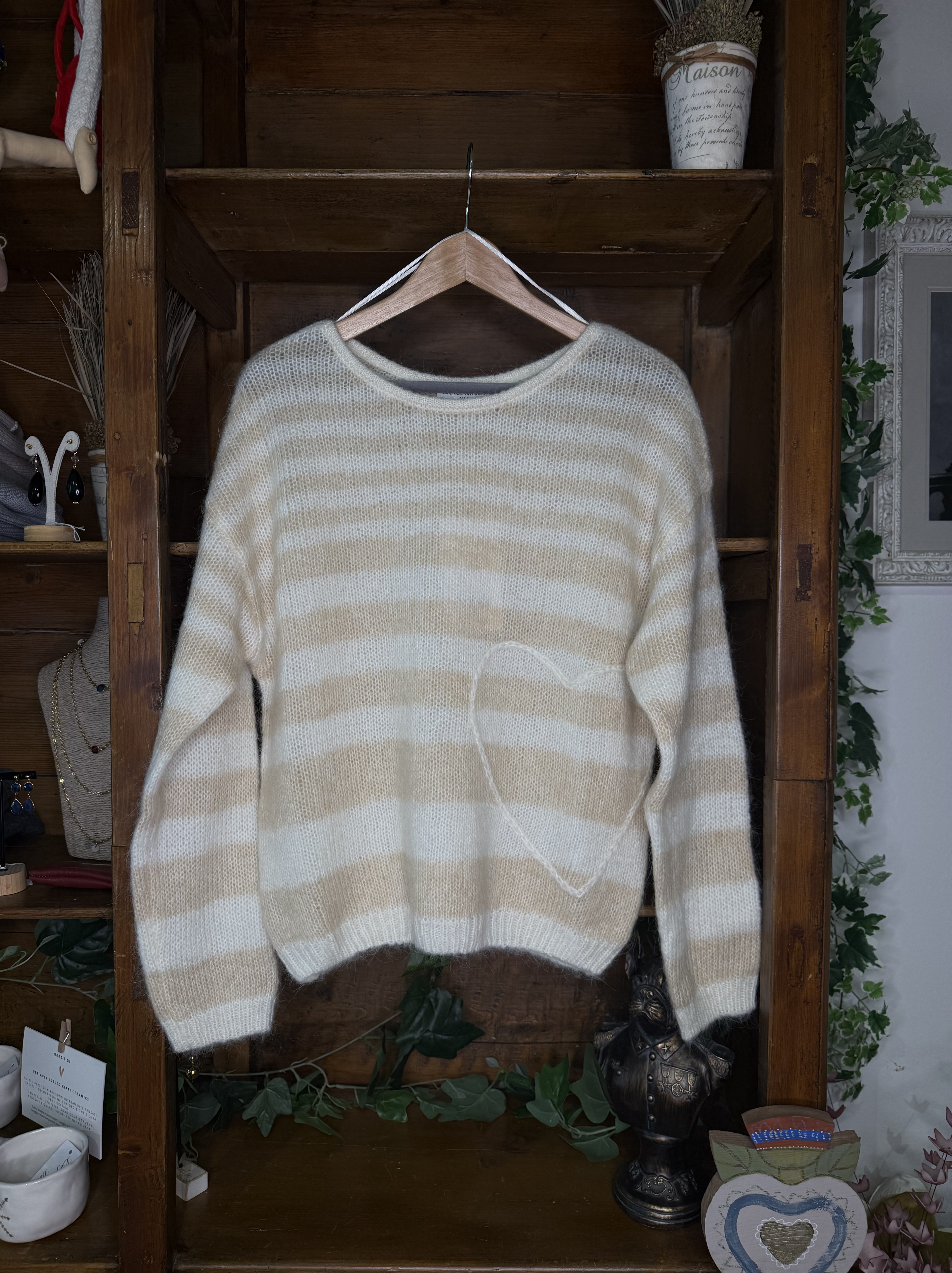 maglione a righe con cuore